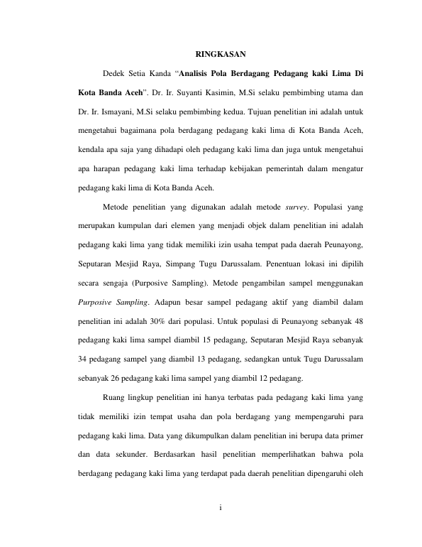 Baca Juga : POLA KONSUMSI PEDAGANG KAKI LIMA DAN PENGARUHNYA TERHADAP PENGEMBANGAN USAHA DI KOTA BANDA ACEH (STUDY KASUS PEDAGANG KAKI LIMA DI PASAR PEUNAYONG) (Eva Wahyuni, 2013)
