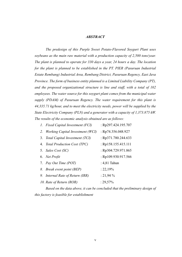Baca Juga : PRARANCANGAN PABRIK SOYGURT BERFLAVOR UBI JALAR UNGU (IPOMOEA BATATAS L. POIR) DENGAN KAPASITAS PRODUKSI 2.500 TON/TAHUN (DARA TURSINA, 2025)