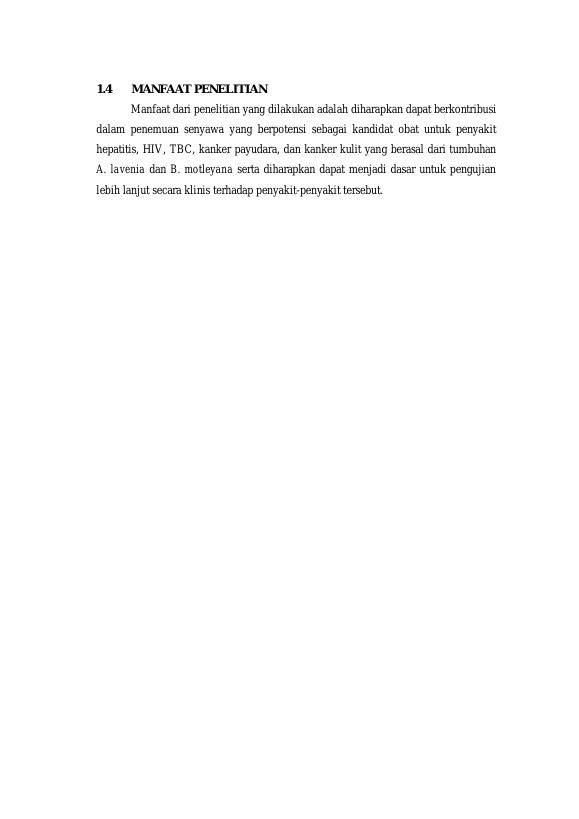 NURUL HAFIFAH, ANALISIS IN SILICO TUMBUHAN ADENOSTEMMA LAVENIA DAN BACCAUREA MOTLEYANA TERHADAP PENYAKIT HEPATITIS, HIV (HUMAN IMMUNODEFICIENCY VIRUS), TBC (TUBERCULOSIS), KANKER KULIT, DAN KANKER PAYUDARA. Banda Aceh Fakultas MIPA (S1),2025
