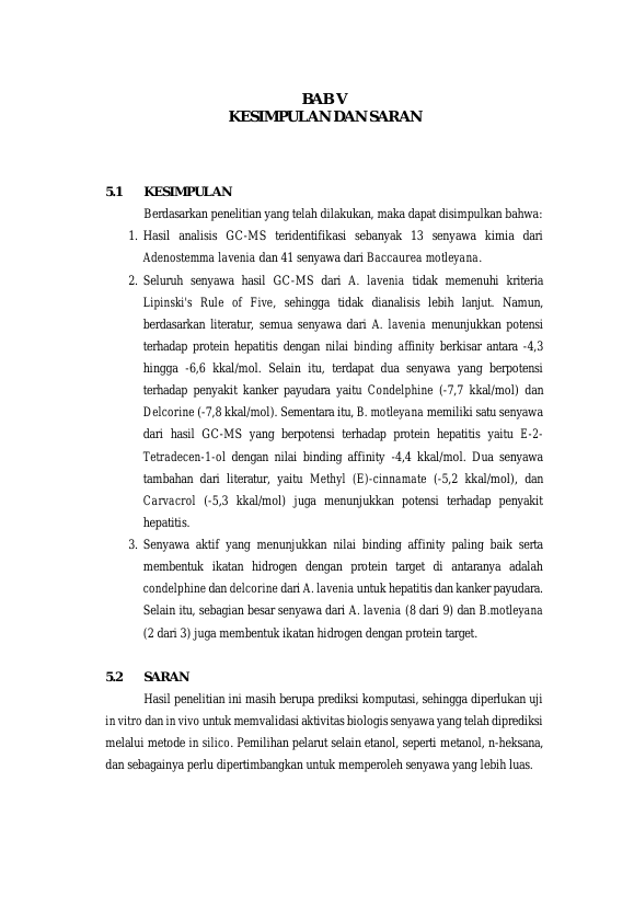 Baca Juga : PENGUJIAN IN SILICO TANAMAN CYMBOPOGON CITRATUS DAN SACCHARUM OFFICINARUM TERHADAP PROTEIN TARGET PENYAKIT HEPATITIS, AIDS, TBC, KANKER KULIT, DAN KANKER PAYUDARA (ADINDA SALSABILA, 2025)