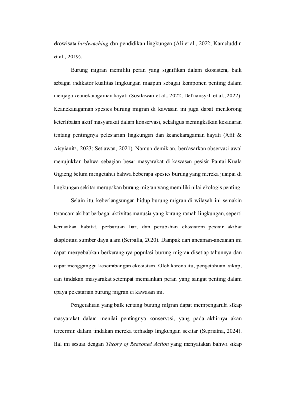 Baca Juga : POTENSI AVIFAUNA BURUNG UNTUK PENGEMBANGAN EKOWISATA BIRDWATCHING DI KAWASAN PESISIR PANTAI KUALA GIGIENG KABUPATEN ACEH BESAR (Fakhrul Rozi Farhan, 2025)