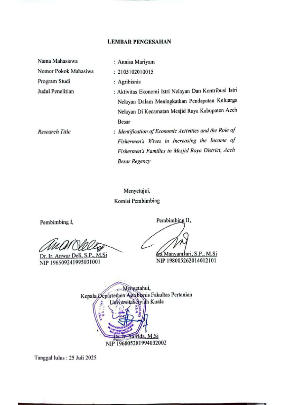 Baca Juga : AKTIVITAS EKONOMI ISTRI NELAYAN DAN KONTRIBUSI ISTRI NELAYAN DALAM MENINGKATKAN PENDAPATAN KELUARGA NELAYAN DI KECAMATAN MESJID RAYA KABUPATEN ACEH BESAR (Annisa Mariyam, 2025)