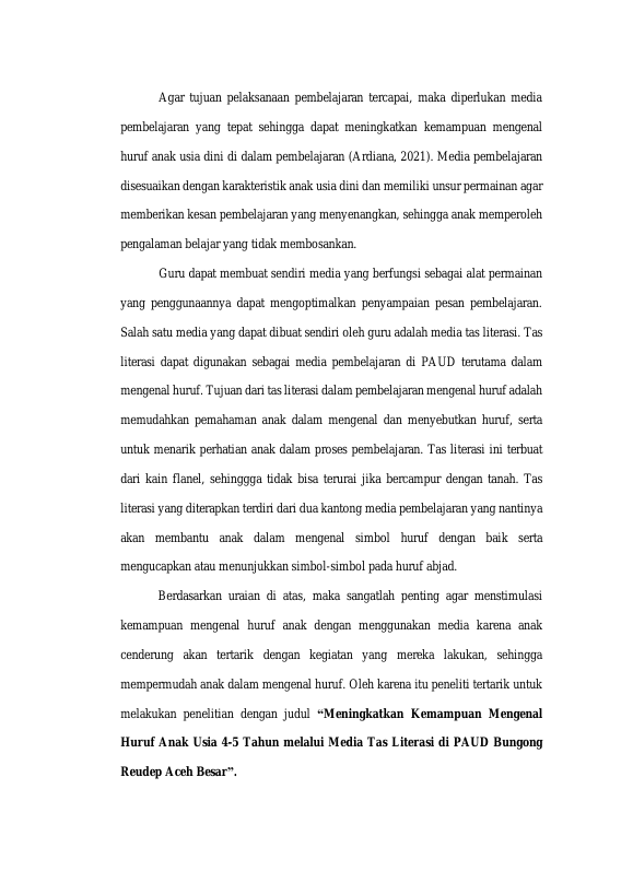 Baca Juga : MENINGKATKAN KEMAMPUAN MENGENAL HURUF PADA ANAK MELALUI MEDIA FLASH CARD DI PAUD AR RAYYAN ACEH BESAR (ZIKRA SURRAHMAH, 2025)