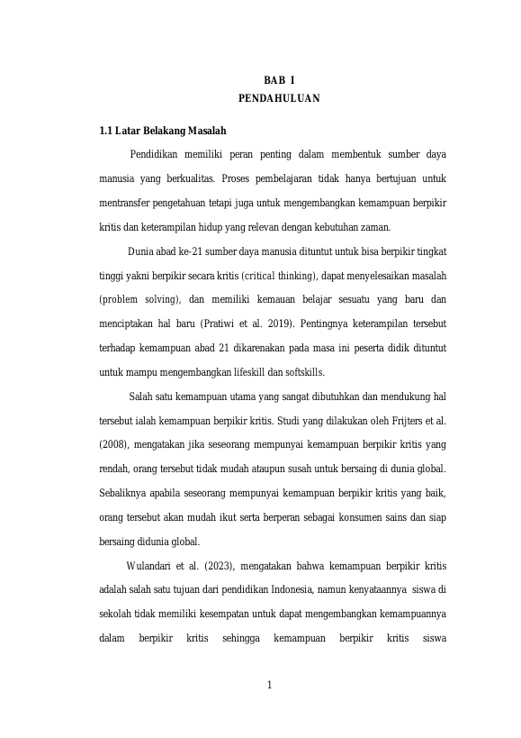 Baca Juga : PENGARUH MODEL PEMBELAJARAN PBL BERBANTUAN LIVEWORKSHEET TERHADAP KEMAMPUAN BERPIKIR KRITIS SISWA SMA PADA MATERI FISIKA (ROZATON, 2026)