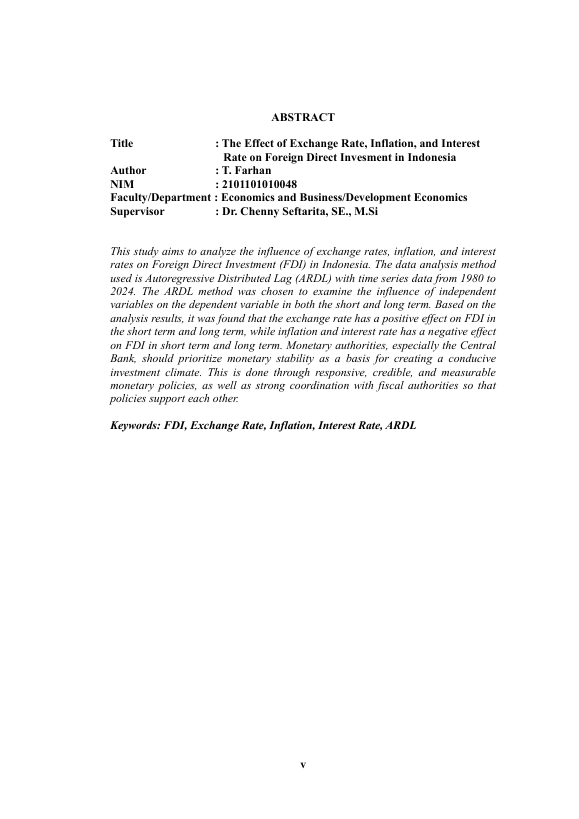 Baca Juga : PENGARUH NILAI TUKAR, INFLASI DAN SUKU BUNGA TERHADAP INVESTASI ASING LANGSUNG DI INDONESIA (T. Farhan, 2025)