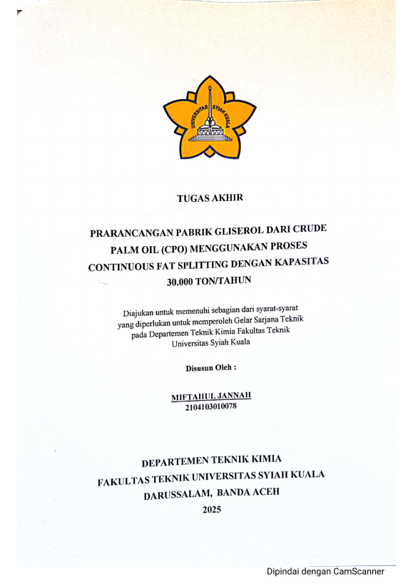 Baca Juga : PRARANCANGAN PABRIK GLISEROL DARI CRUDE PALM OIL (CPO) DENGAN KAPASITAS 10.000 TON/TAHUN (Rita Ramlayanti, 2024)