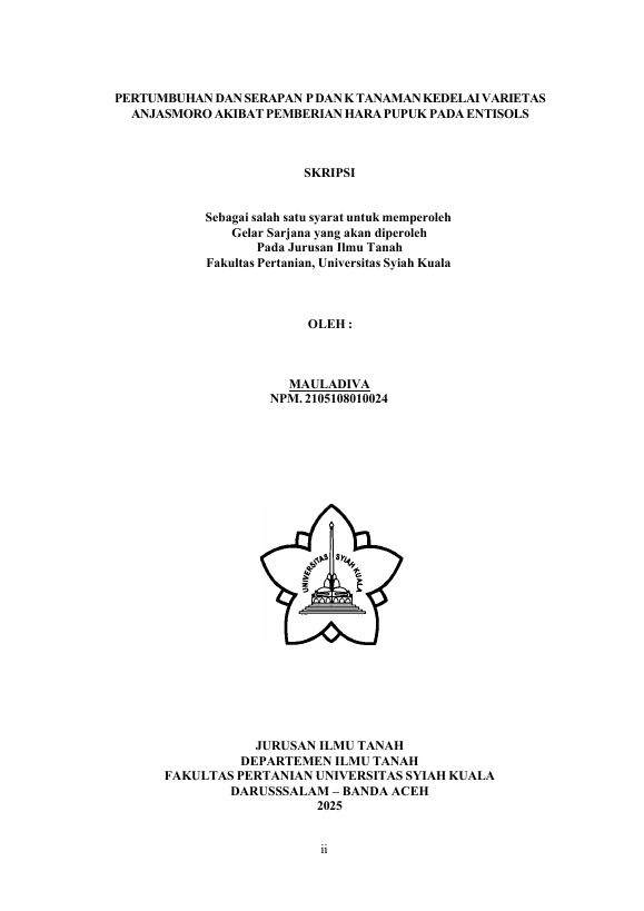 Baca Juga : PERTUMBUHAN DAN SERAPAN NITROGEN TANAMAN KEDELAI VARIETAS ANJASMORO AKIBAT PERLAKUAN HARA PUPUK PADA ENTISOL DARUSSALAM, BANDA ACEH (Hafizza Rahmah, 2025)