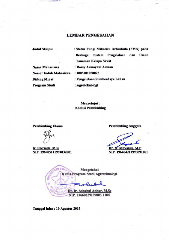 rossy armayani arman, STATUS FUNGI MIKORIZA ARBUSKULA (FMA) PADA BERBAGAI SISTEM PENGELOLAAN DAN UMUR TANAMAN KELAPA SAWIT. Banda Aceh Universitas Syiah Kuala,2015