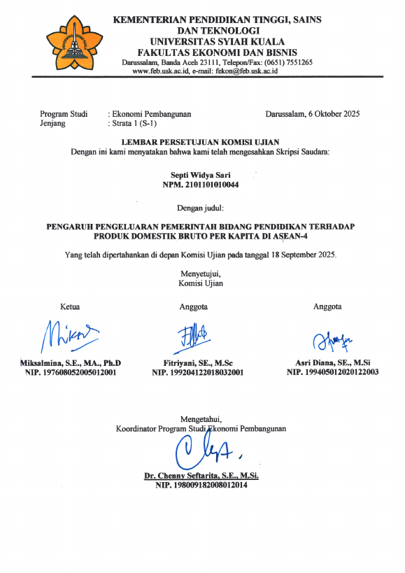 Baca Juga : PENGARUH PENGELUARAN PEMERINTAH BIDANG PENDIDIKAN TERHADAP PRODUK DOMESTIK BRUTO PER KAPITA DI ASEAN-4 (Septi Widya Sari, 2025)