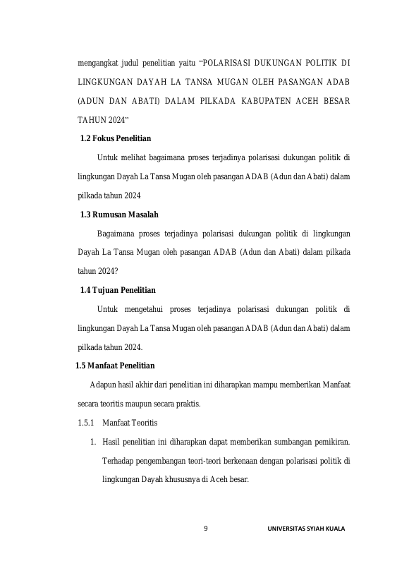 Baca Juga : PENGARUH KETOKOHAN WALED HUSAINI TERHADAP PERILAKU PEMILIH ( SUATU PENELITIAN TERHADAP KEMENANGAN MAWARDI ALI-HUSAINI PADA PILKADA 2017 DI KECAMATAN INGIN JAYA, ACEH BESAR) (ANDIKA PHONNA AGAM, 2018)