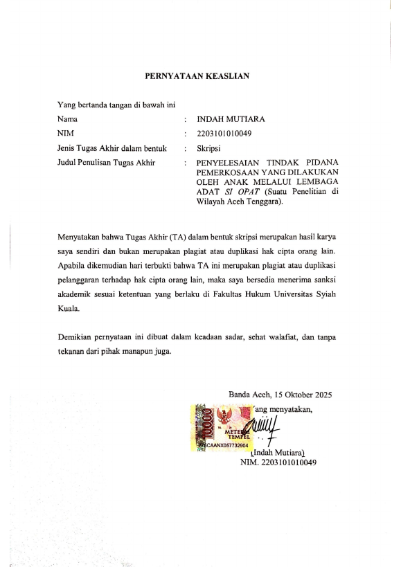 Baca Juga : PENYELESAIAN TINDAK PIDANA KEKERASAN DALAM RUMAH TANGGA MELALUI LEMBAGA ADAT (SUATU PENELITIAN DI KECAMATAN GAJAH PUTIH KABUPATEN BENER MERIAH) (Nora salisa, 2024)