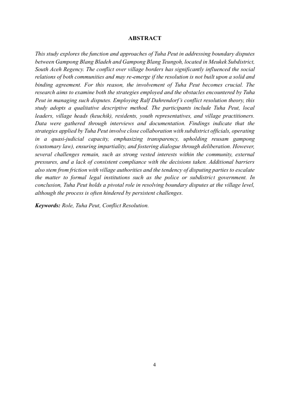 Baca Juga : PERAN TUHA PEUT GAMPONG SEBAGAI BADAN PERMUSYAWARATAN GAMPONG DALAM PENYELESAIAN PERSELISIHAN MASYARAKAT (SUATU PENELITIAN DI KECAMATAN BABAHROT KABUPATEN ACEH BARAT DAYA) (RABI AGUSTIA, 2016)