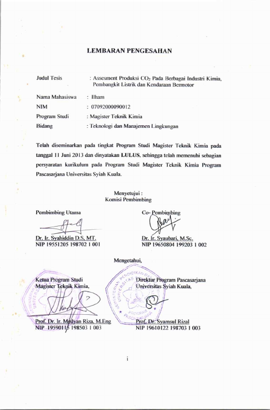 ILHAM, ASSESMENT PRODUKSI CO2 PADA INDUSTRI KIMIA, PEMBANGKIT LISTRIK DAN KENDERAAN BERMOTOR. Banda Aceh Prog. Studi Megister Teknik Kimia,2013