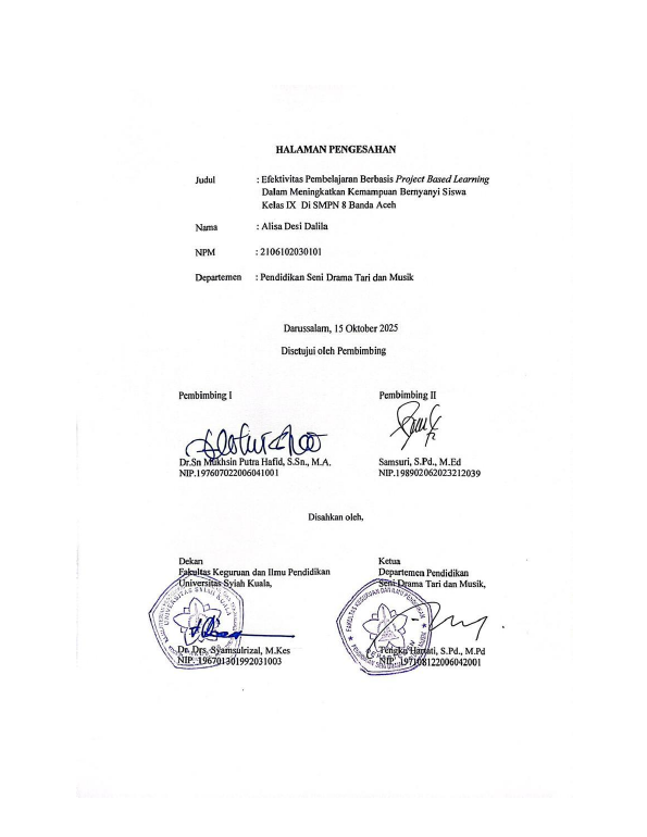 Baca Juga : EFEKTIVITAS PEMBELAJARAN BERBASIS PROJECT BASED LEARNING DALAM MENINGKATKAN KEMAMPUAN BERNYANYI SISWA KELAS IX DI SMPN 8 BANDA ACEH (ALISA DESI DALILA, 2025)