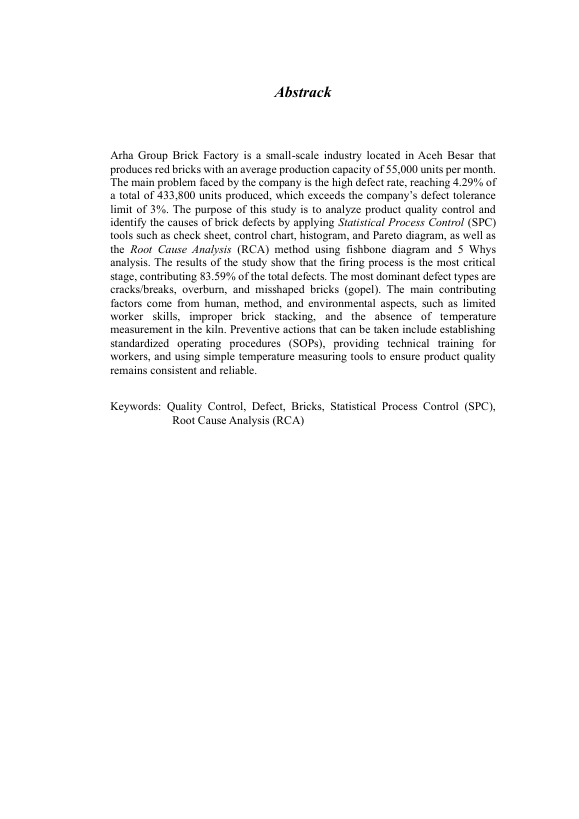Baca Juga : ANALISIS PENGENDALIAN KUALITAS PRODUK BATU BATA MENGGUNAKAN METODE STATISTICAL PROCESS CONTROL ( STUDI KASUS : KILANG BATU BATA USAHA FAMILY ) (MUHAMMAD SYAUQI NUR, 2024)