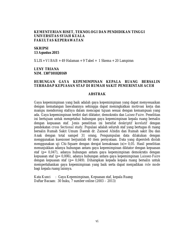 Baca Juga : HUBUNGAN KEPEMIMPINAN EFEKTIF KEPALA RUANG RNDENGAN KEPUASAN KERJA PERAWAT DI RUANG RNRAWAT INAP KELAS III RUMAH SAKIT UMUM DAERAH DR ZAINOEL ABIDIN BANDA ACEH 2012 (Riski, 2022)
