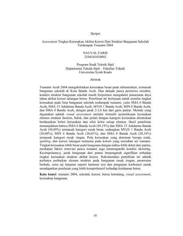 Baca Juga : ASSESSMENT AWAL STRUKTUR BANGUNAN PERKANTORAN DI KOTA BANDA ACEH PASCA 19 TAHUN TSUNAMI 2004 (MUHAMMAD HARIS, 2024)