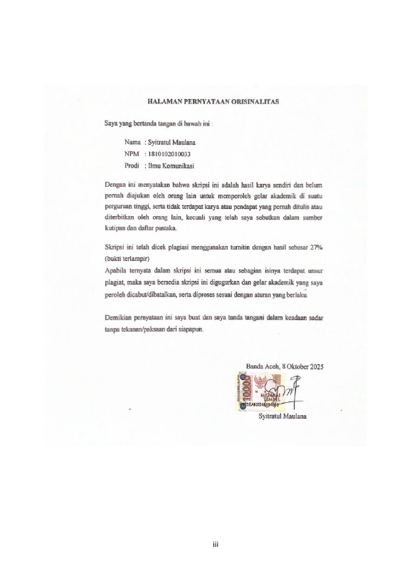 Baca Juga : STRATEGI KOMUNIKASI DINAS PEMBERDAYAAN PEREMPUAN DAN PERLINDUNGAN ANAK (DP3A) PROVINSI DALAM PENGEMBANGAN PROGRAM KABUPATEN/KOTA LAYAK ANAK DI ACEH (M. SAFRI IRWANDA, 2022)