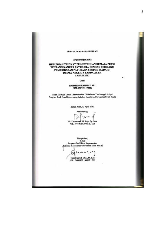 Baca Juga : HUBUNGAN ANTARA TINGKAT PENGETAHUAN REMAJA PUTRI TENTANG KANKER PAYUDARA DENGAN PERILAKU SADARI DI SMA N 4 BANDA ACEH TAHUN 2012 (Rahmi Muhammad Ali, 2023)