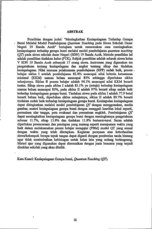Baca Juga : MENINGKATKAN KESIAPSIAGAAN TERHADAP GEMPA BUMI MELALUI MODEL PEMBELAJARAN QUANTUM TEACHING PADA SISWA SEKOLAH DASAR NEGERI 19 BANDA ACEH (Irma Suryani, 2025)