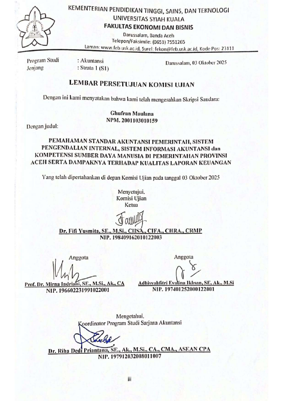 Baca Juga : PENGARUH PENERAPAN SISTEM AKUNTANSI PEMERINTAHAN DAN PENGENDALIAN INTERN TERHADAP GOOD GOVERNANCE DAN DAMPAKNYA PADA KUALITAS LAPORAN KEUANGAN (STUDI PADA SKPA PEMERINTAH ACEH) (Yusniyar, 2016)