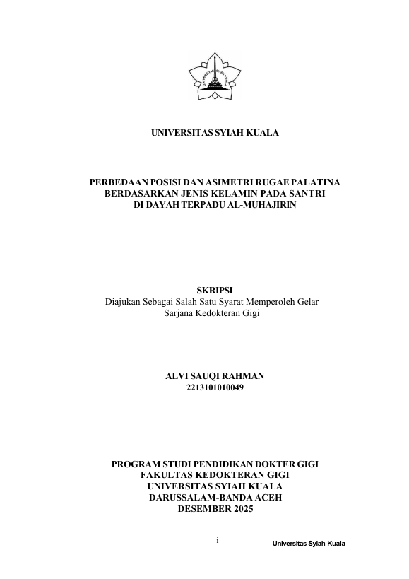 Baca Juga : PERBEDAAN BENTUK DAN JUMLAH RUGAE PALATINARNANTARA LAKI-LAKI DAN PEREMPUAN DI DAYAHRNTERPADU AL-MUHAJIRIN (IFFAH PUTRI ARAFAH, 2026)