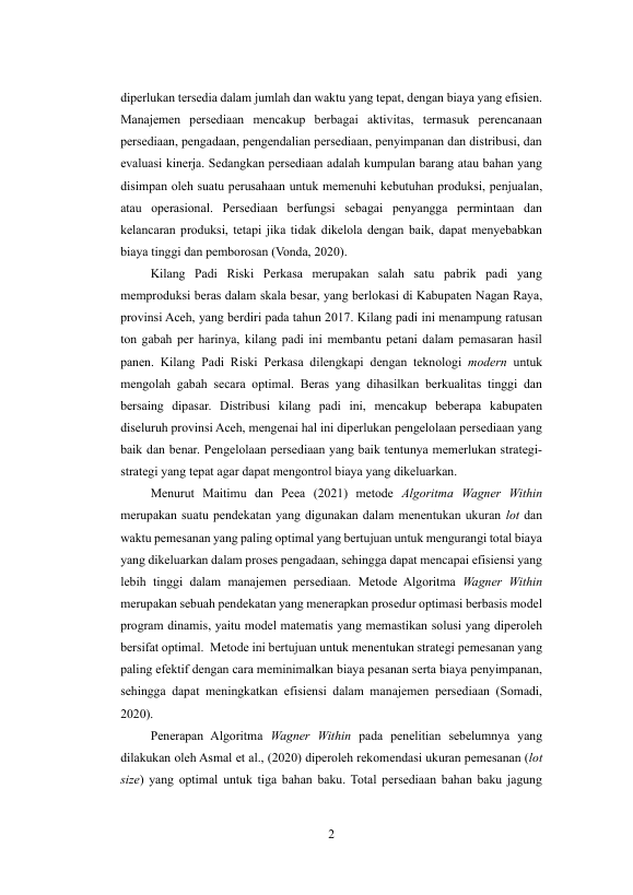 MELA MUTIA, PERENCANAAN SISTEM PENGENDALIAN PERSEDIAAN BAHAN BAKU GABAH MENGGUNAKAN ALGORITMA WAGNER WITHIN (STUDI KASUS: KILANG PADI RISKI PERKASA). Banda Aceh Fakultas Teknik,2025