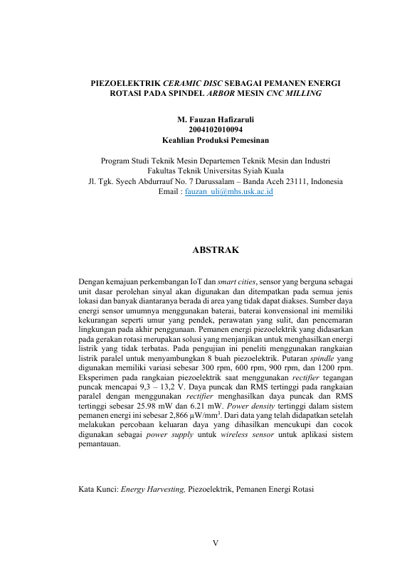 Baca Juga : PIEZOELEKTRIK CERAMIC DISC SEBAGAI PEMANEN ENERGI ROTASI PADA SPINDEL ARBOR MESIN CNC MILLING (MUHAMMAD FAUZAN HAFIZARULI, 2026)