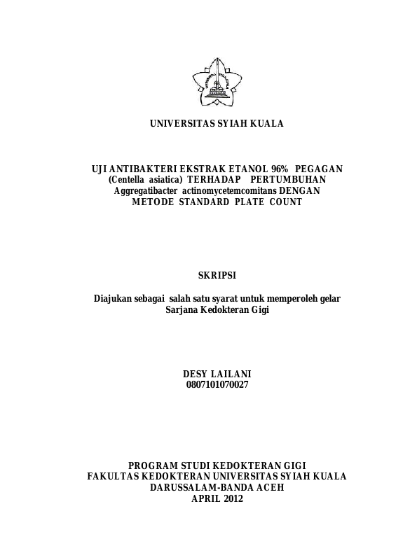 Baca Juga : UJI ANTIBAKTERI EKSTRAK ETANOL 96% PEGAGAN (CENTELLA ASIATICA) TERHADAP PERTUMBUHAN AGGREGATIBACTER ACTINOMYCETEMCOMITANS DENGAN METODE STANDARD PLATE COUNT (Desy lailani, 2023)