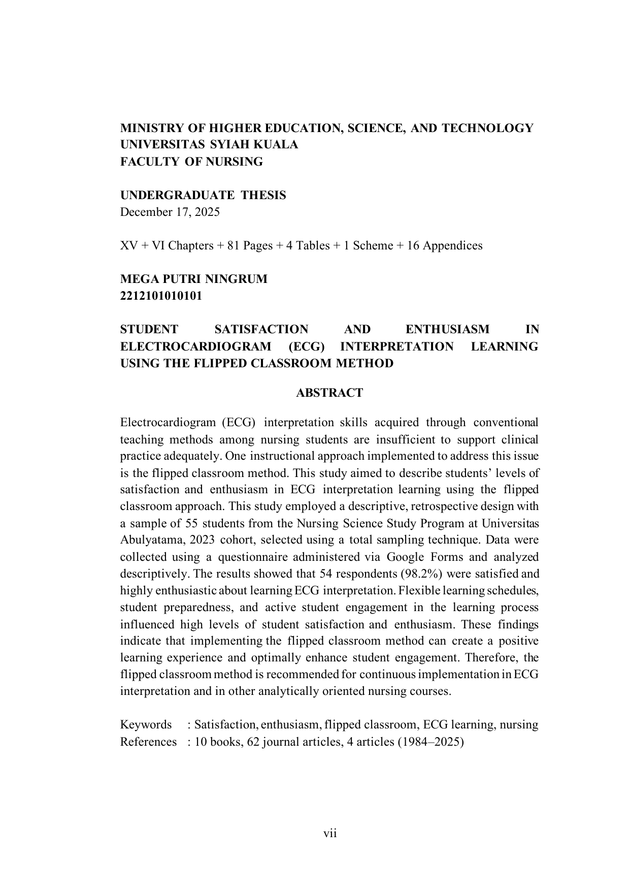 Baca Juga : KOMPETENSI INTERPRETASI ELEKTROKARDIOGRAM PADA MAHASISWA KEPERAWATAN DENGAN METODE FLIPPED CLASSROOM (ZAHRATUL SYIFA, 2025)