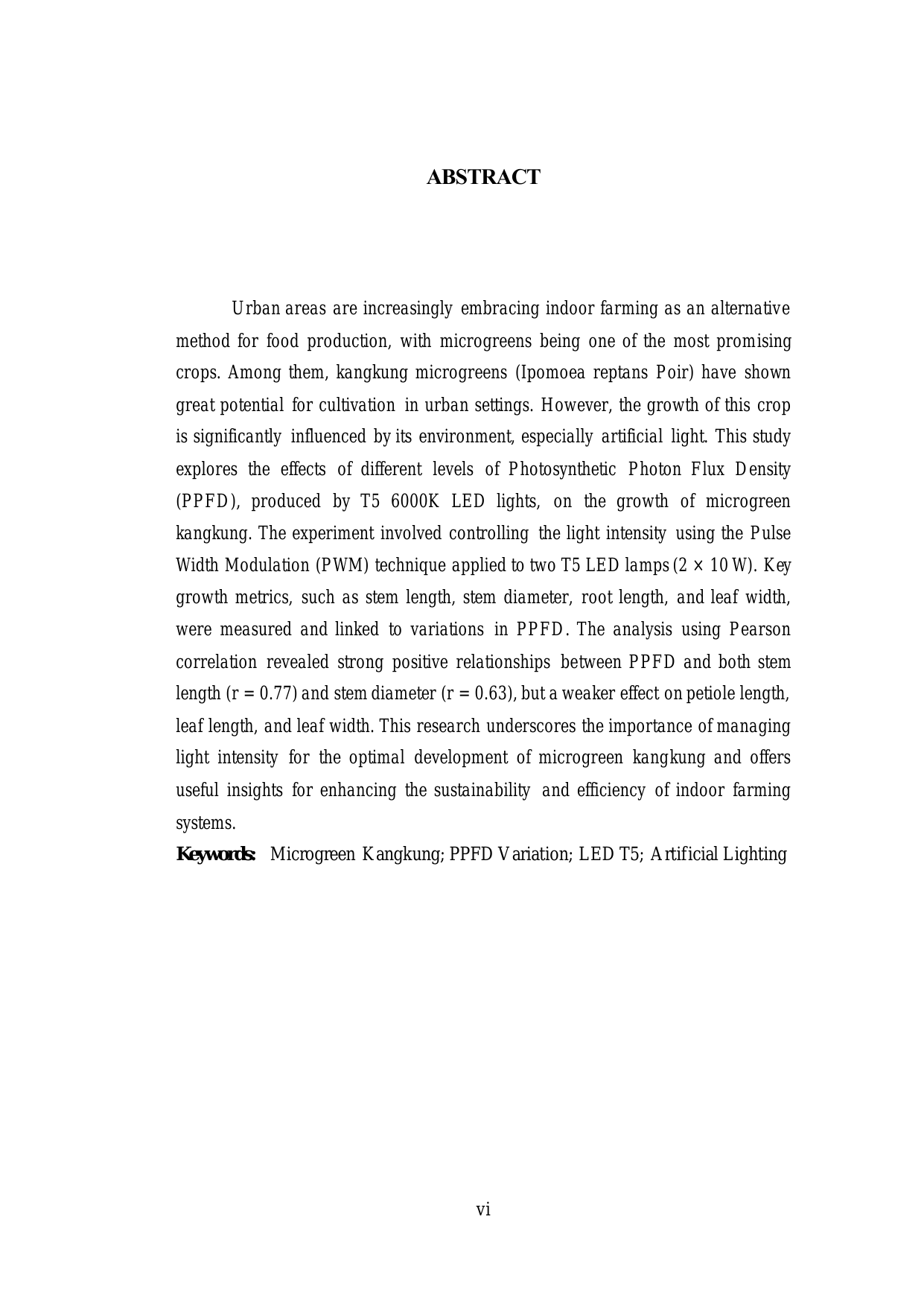 Muhammad Fajri, PENGARUH FLUKTUASI PPFD TERHADAP PERKEMBANGAN MICROGREEN KANGKUNG DENGAN PENERANGAN LAMPU T5 LED 6000K. Banda Aceh Fakultas Teknik,2026