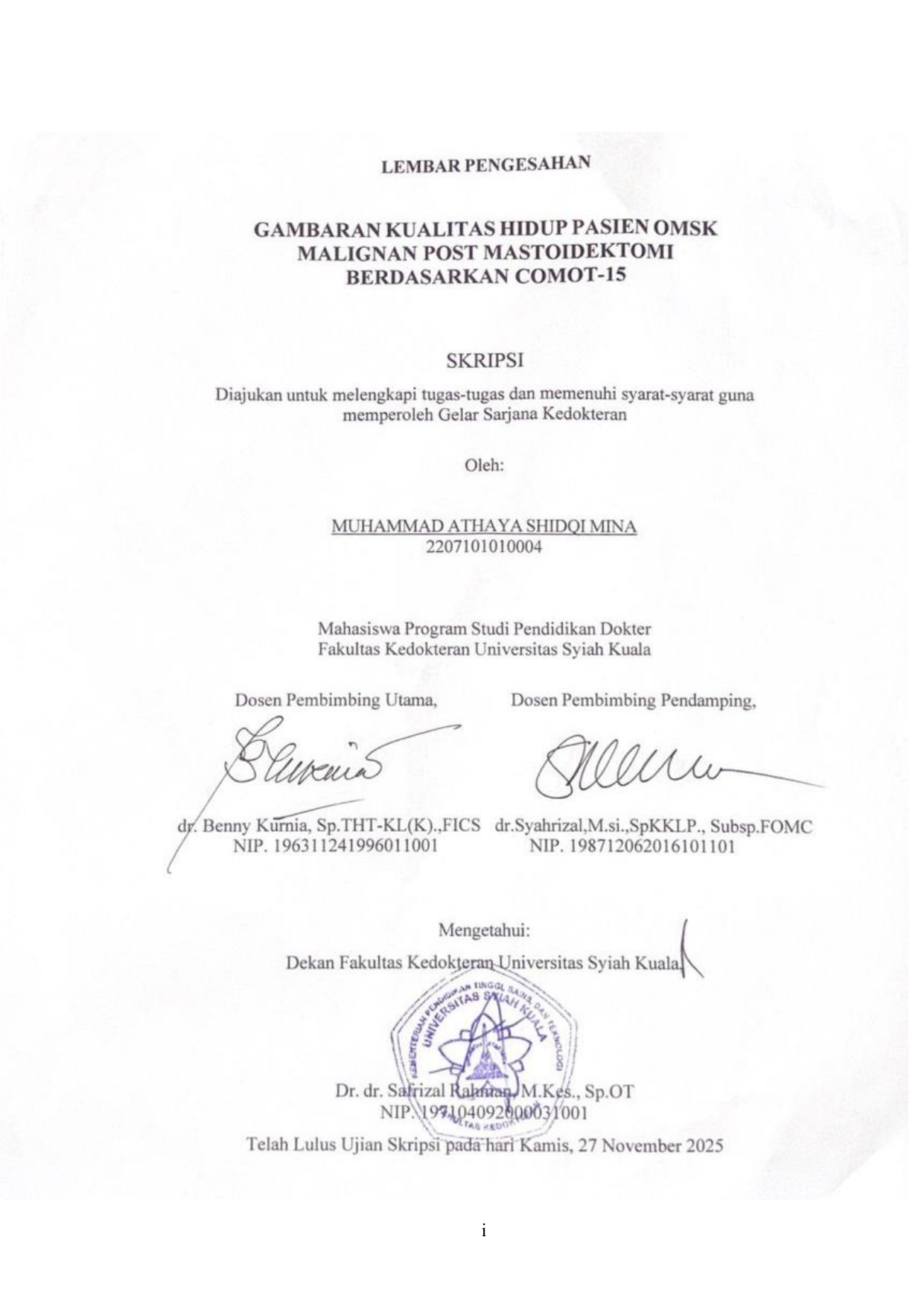 Baca Juga : DETERMINAN KUALITAS HIDUP PASIEN OTITIS MEDIA SUPURATIF KRONIK TIPE AMAN PASCA TIMPANOPLASTI DI RUMAH SAKIT UMUM DAERAH DR. ZAINOEL ABIDIN (M. Faiz Alfarizzy, 2025)