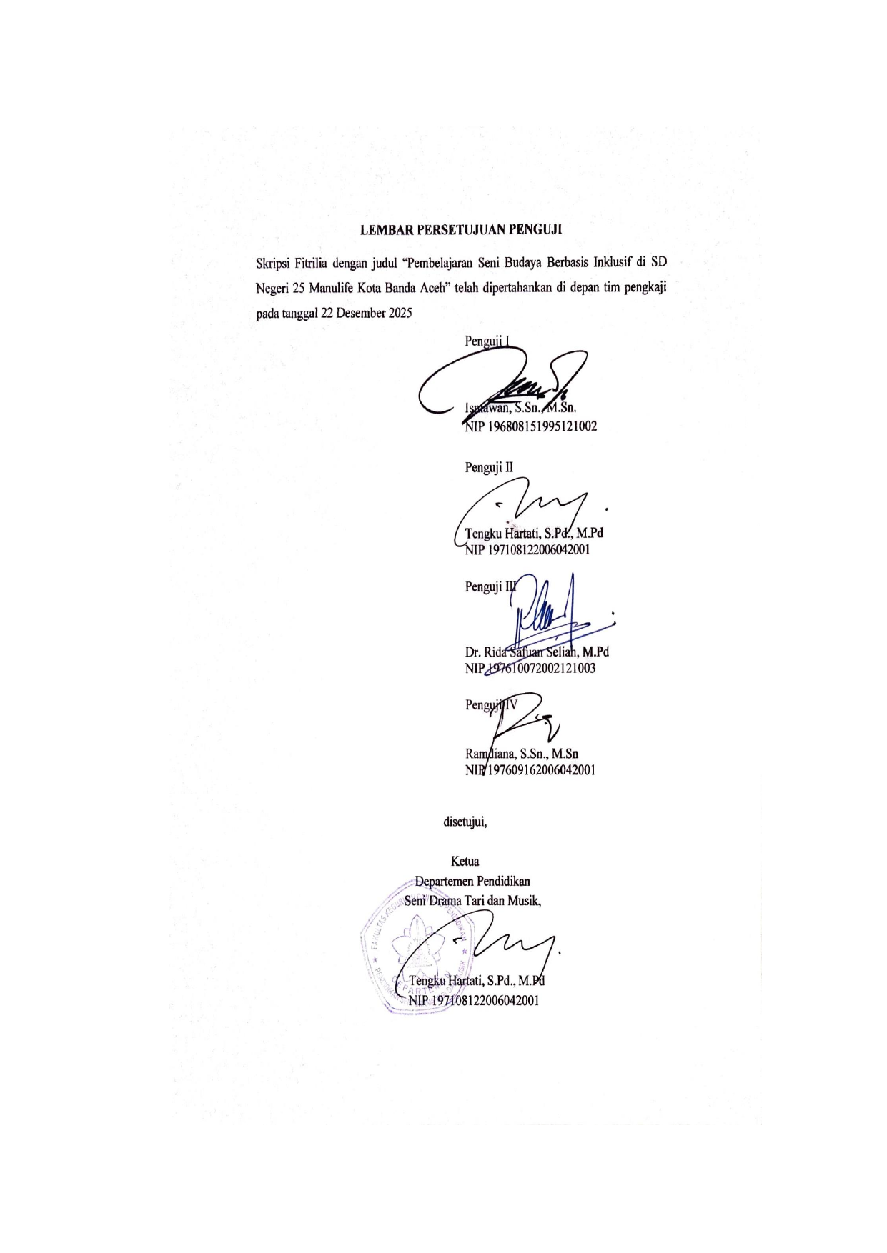 FITRILIA, PEMBELAJARAN SENI BUDAYA BERBASIS INKLUSIF DI SD NEGERI 25 MANULIFE KOTA BANDA ACEH. Banda Aceh Fakultas KIP,2026