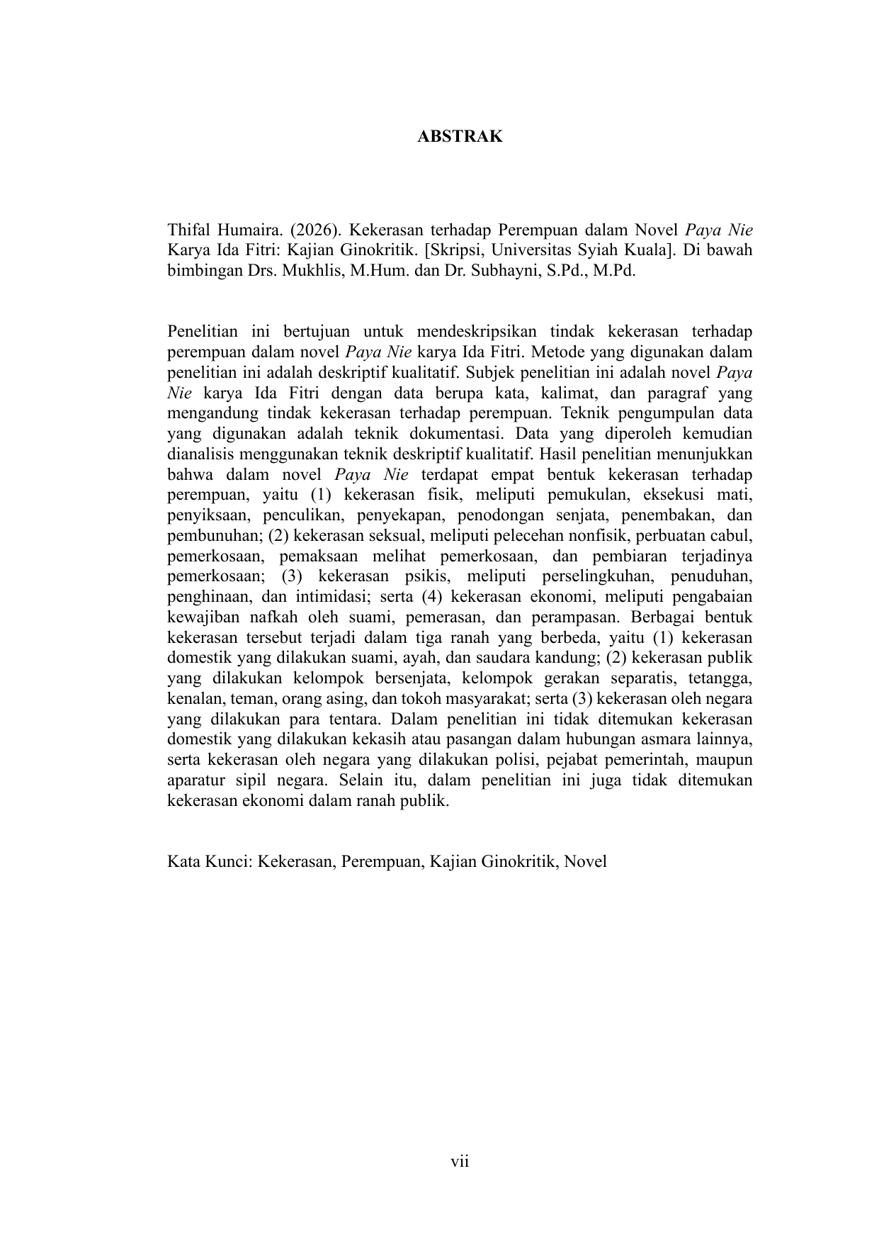 Baca Juga : KEKERARASAN TERHADAP PEREMPUAN DALAM NOVEL PAYA NIE KARYA IDA FITRI: KAJIAN GINOKRITIK (THIFAL HUMAIRA, 2026)