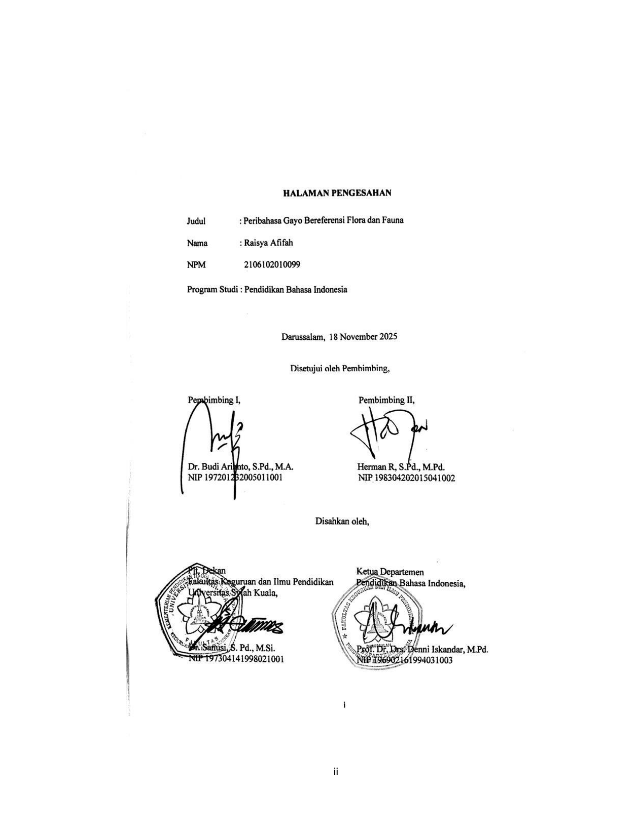 RAISYA AFIFAH, PERIBAHASA GAYO BEREFERENSI FLORA DAN FAUNA. Banda Aceh Fakultas KIP,2026