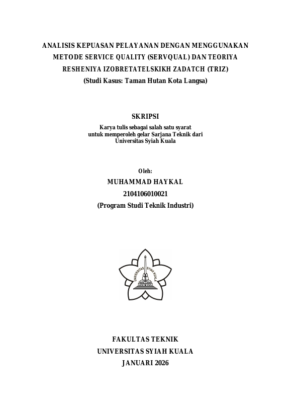 Baca Juga : ANALISIS KUALITAS PELAYANAN RAWAT JALAN MENGGUNAKAN METODE SERVICE QUALITY (SERVQUAL) DAN TRIZRN(STUDI KASUS: RUMAH SAKIT UMUM DAERAH TGK. ABDULLAH SYAFI’I) (AHMAD AKRAL BUKHRA, 2023)