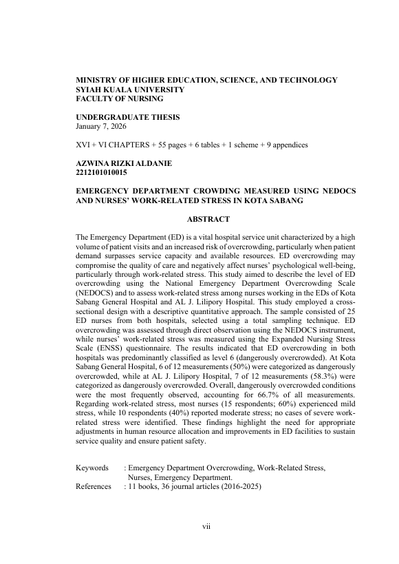 Baca Juga : GAMBARAN STRES KERJA PERAWAT PELAKSANA DI RUANG PERAWATAN INTENSIFRNRUMAH SAKIT UMUM DAERAH DR. ZAINOEL ABIDIN TAHUN 2009" (Mega Angsoka Lubis, 2023)