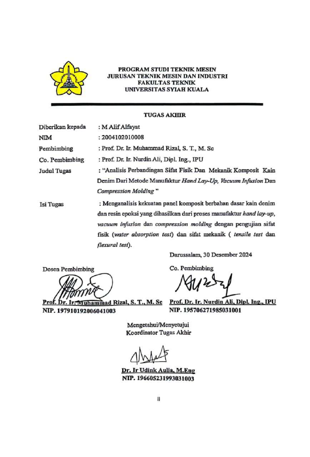 Baca Juga : ANALISIS PERBANDINGAN SIFAT FISIK DAN MEKANIK KOMPOSIT KAIN DENIM DARI METODE MANUFAKTUR HAND LAY-UP, VACUUM INFUSION DAN COMPRESSION MOLDING (M Alif Alfayat, 2026)