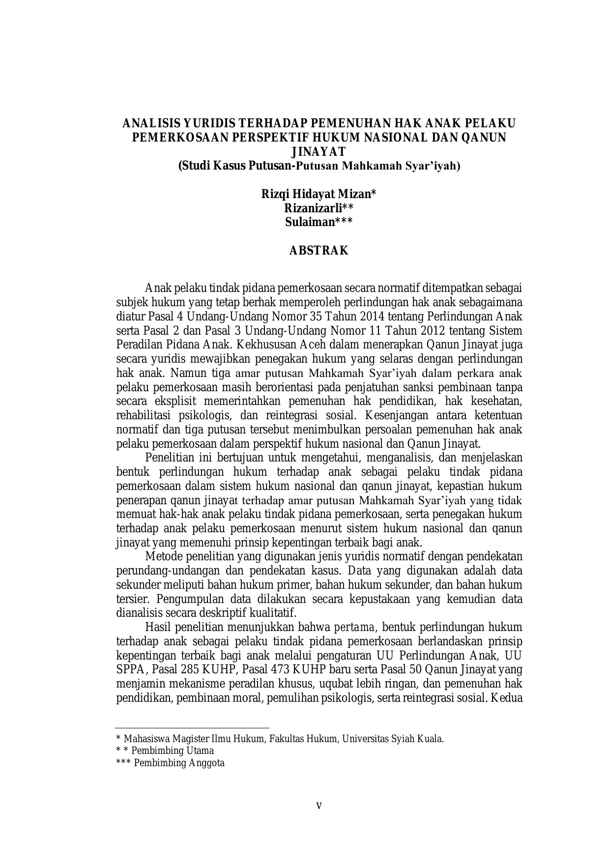 Baca Juga : JARIMAH PEMERKOSAAN TERHADAP ANAK (STUDI KASUS PUTUSAN MAHKAMAH SYAR'IYAH JANTHO NOMOR 23/JN/2023/MS.JTH (TASYA NABILA, 2024)