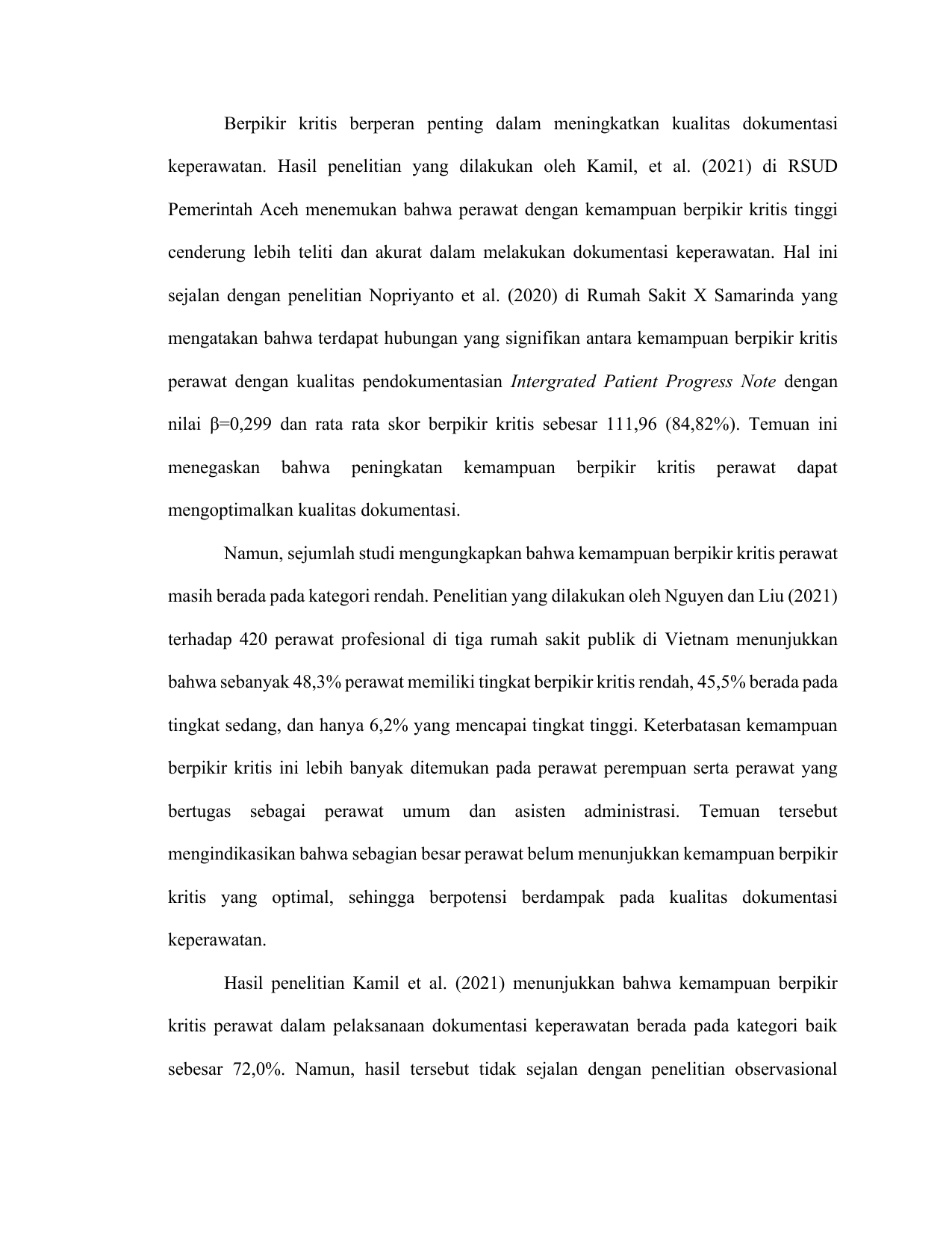 Baca Juga : HUBUNGAN BERPIKIR KRITIS PERAWAT DENGAN PENDOKUMENTASIAN PROSES KEPERAWATAN DI RUMAH SAKIT UMUM DAERAH MEURAXA KOTA BANDA ACEH (Dian Raiza Jannati, 2024)
