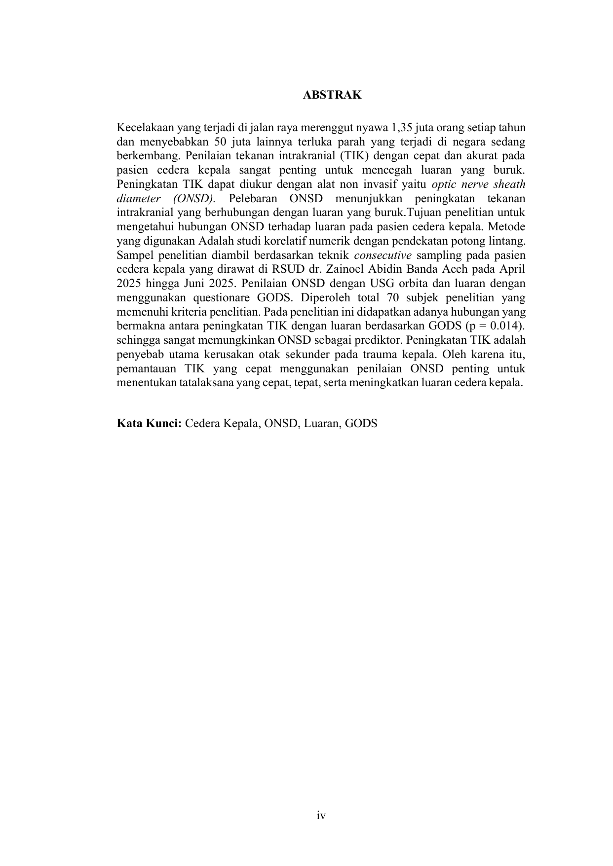 Baca Juga : KORELASI OPTIC NERVE SHEATHS DIAMETER (ONSD) PADA NYERI KEPALA PASCA TRAUMA DENGAN LUARAN KLINIS BERDASARKAN GLASGOW OUTCOME AT DISCHARGE SCALE ( Fitri Hariyati, 2026)
