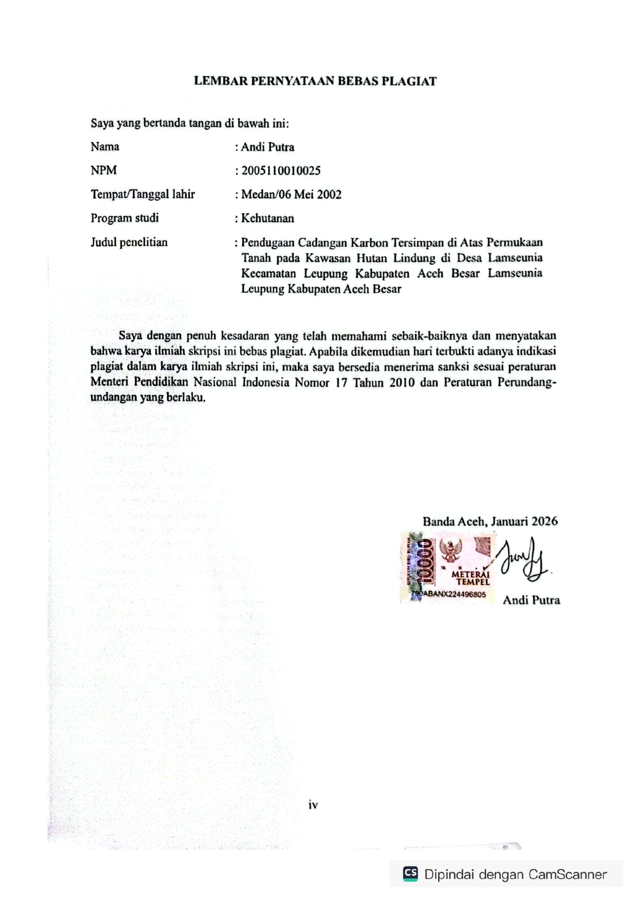 Baca Juga : PENDUGAAN CADANGAN KARBON DI ATAS PERMUKAAN TANAH DESA PUCOK, KECAMATAN GEUMPANG, KABUPATEN PIDIE (Serly Syahfitry, 2024)