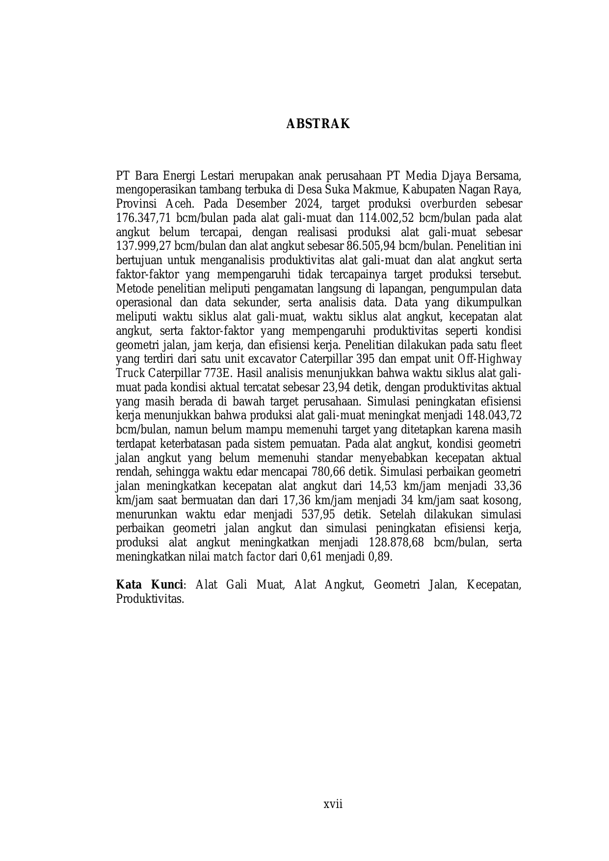 Baca Juga : KAJIAN TEKNIS PENINGKATAN PRODUKTIVITAS EXCAVATOR CAT 340D2 PADA OVERBURDEN REMOVAL DI PIT IV PT. BARA ENERGI LESTARI, KABUPATEN NAGAN RAYA, ACEH (UTAMI TRIANI, 2018)