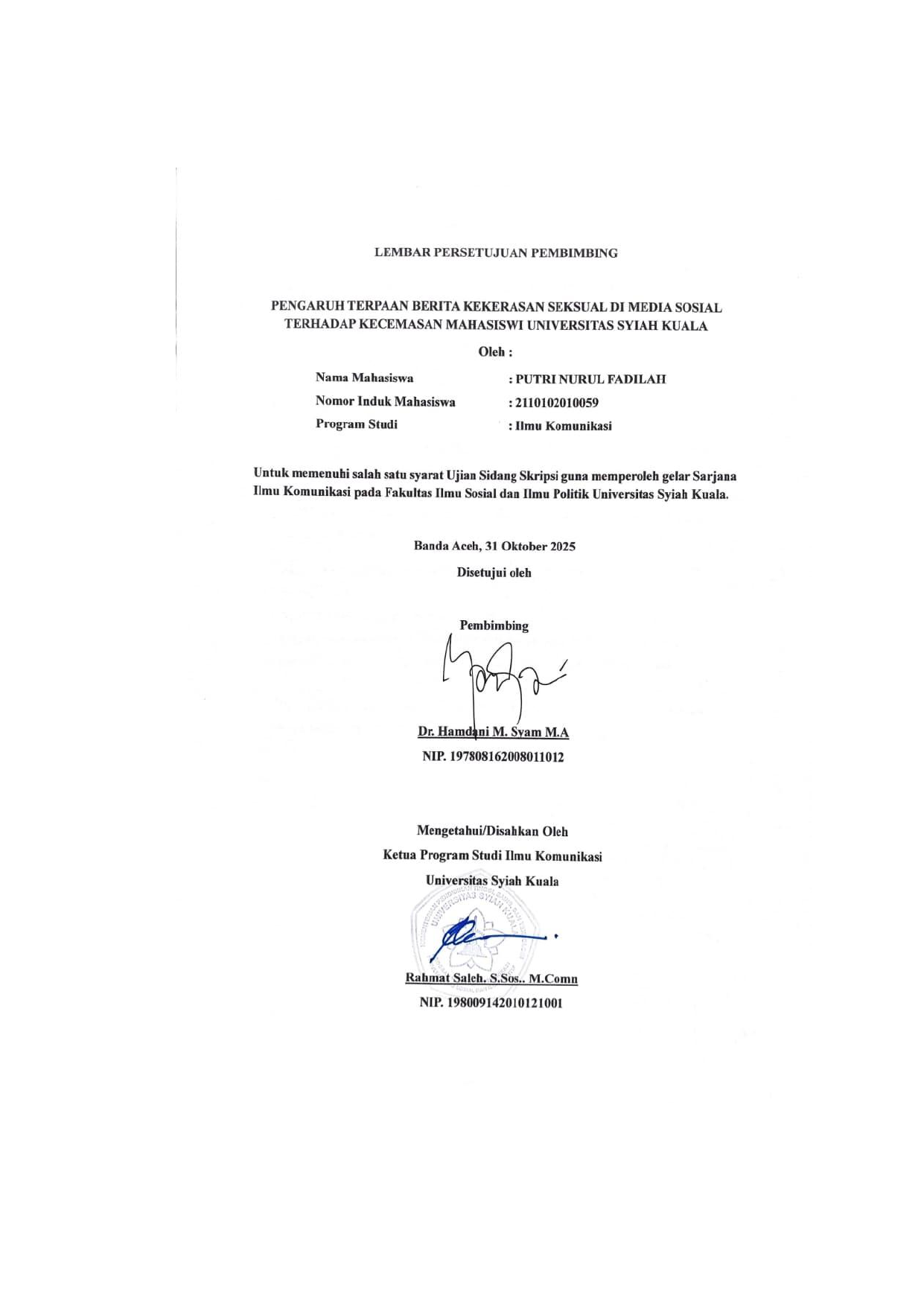 Baca Juga : PENGARUH TERPAAN BERITA KEKERASAN SEKSUAL PADA AKUN INSTAGRAM KABAR ACEH TERHADAP TINGKAT KECEMASAN ORANG TUA DI BANDA ACEH (Nora Afisa, 2023)