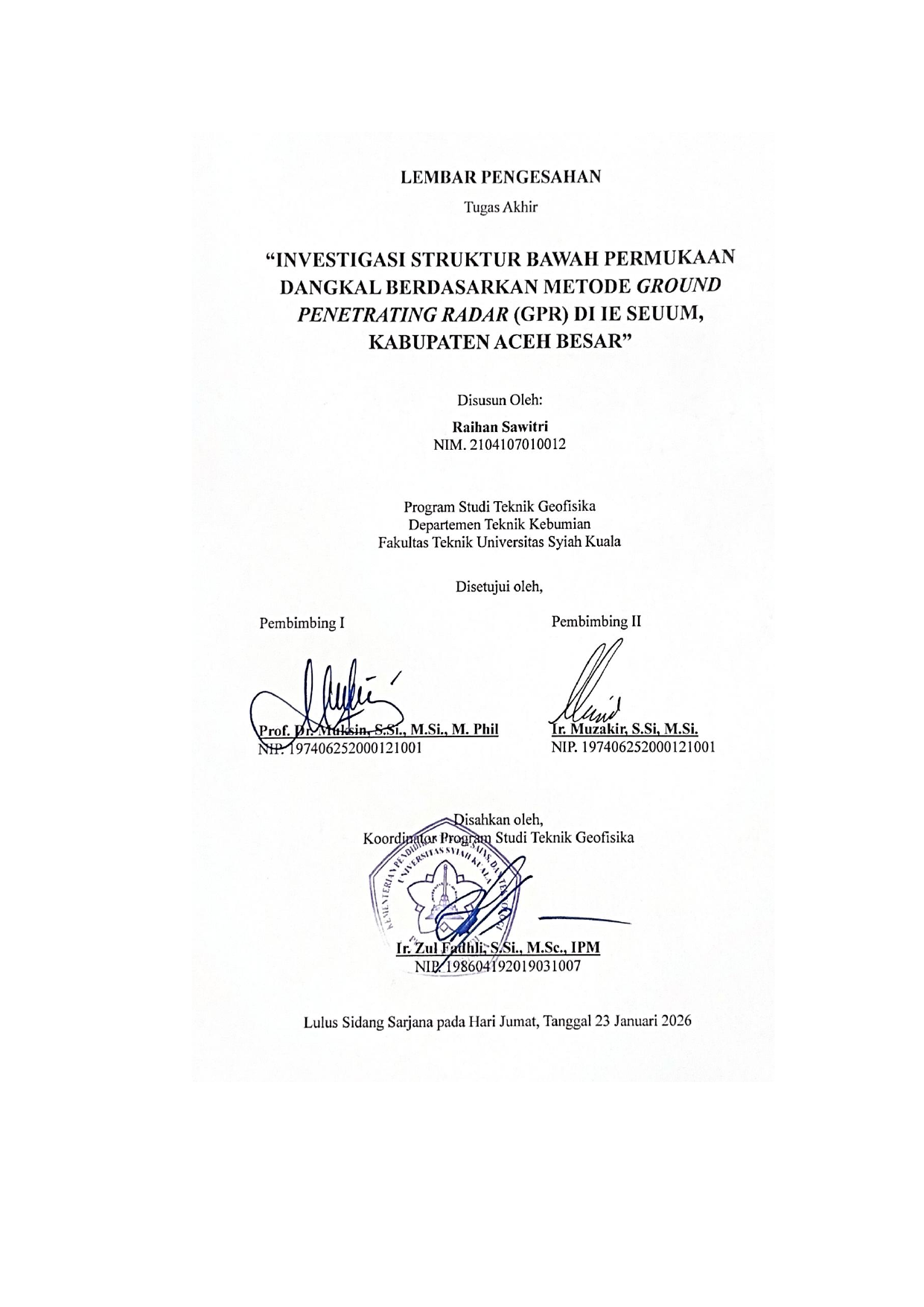 Baca Juga : IDENTIFIKASI STRUKTUR SEDIMENTASI DI AREA PERSAWAHAN DENGAN METODE GROUND PENETRATING RADAR DI GAMPONG RUMPET, ACEH BESAR (Shaunul Hardi, 2016)