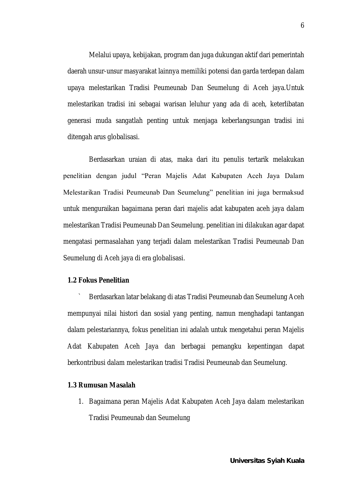 Baca Juga : PERAN MAJELIS ADAT KABUPATEN ACEH JAYA DALAM MELESTARIKAN TRADISI PEUMEUNAB DAN SEUMELUENG (TAMLI KHAIS, 2026)