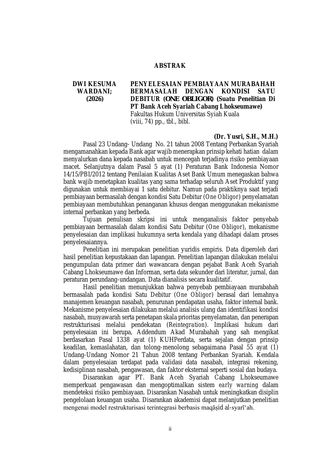 Baca Juga : PENYELESAIAN PEMBIAYAAN BERMASALAH DENGAN JAMINAN HAK TANGGUNAN BUKAN MILIK DEBITUR PADA AKAD MURABAHAH (SUATU PENELITIAN DI PT. BANK PEMBIAYAAN RAKYAT SYARIAH (BPRS) MUSTAQIM ACEH (Muhammad Tanzura Aqsa, 2023)