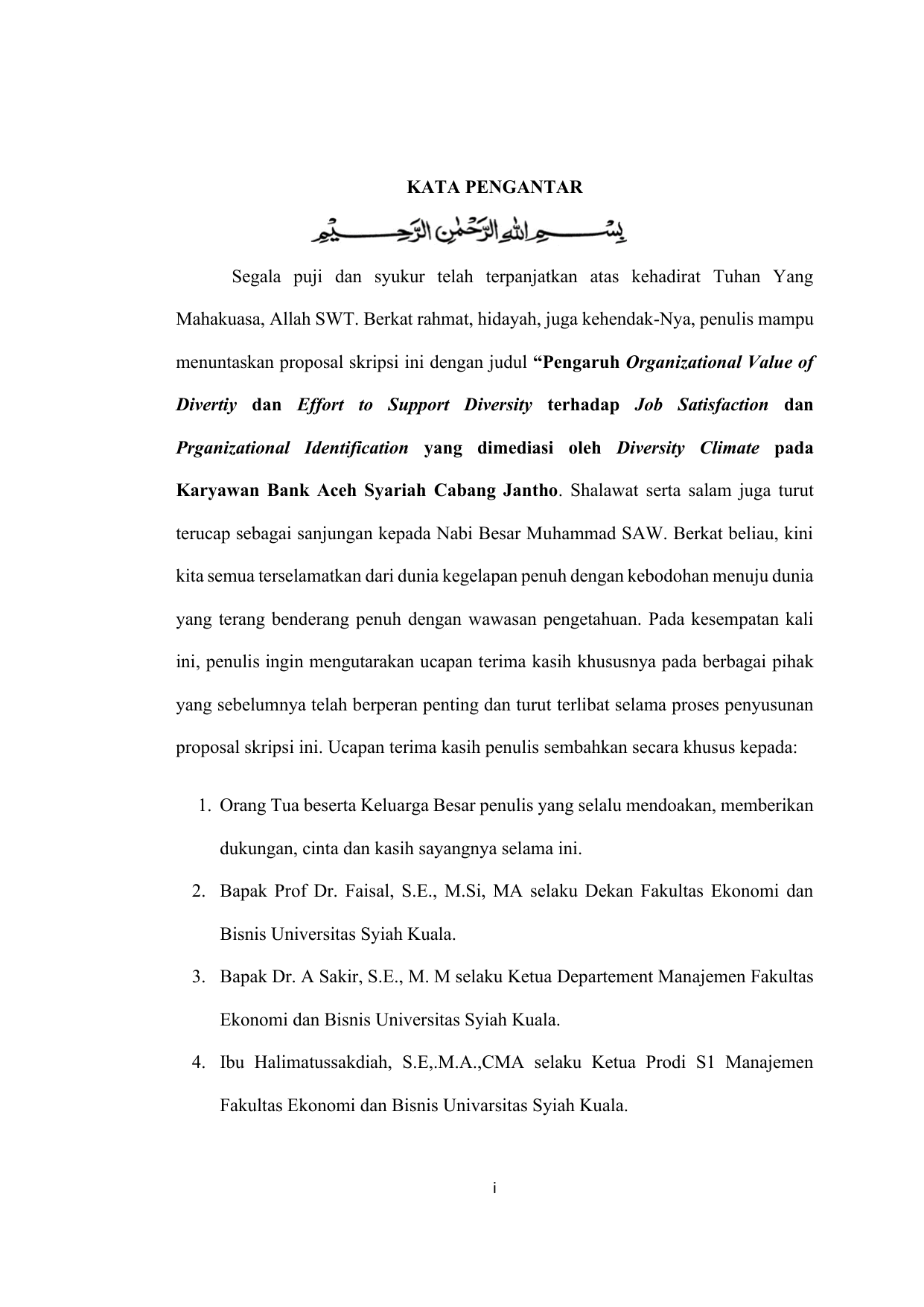 Misna Mufrihuna, PENGARUH ORGANIZATIONAL VALUE OF DIVERSITY DAN EFFORT TO SUPPORT DIVERSITY TERHADAP JOB SATISFACTION DAN ORGANIZATIONAL IDENTIFICATION YANG DIMEDIASI OLEH DIVERSITY CLIMATE PADA KARYAWAN BANK ACEH SYARIAH CABANG JANTHO. Banda Aceh Fakultas Ekonomi dan Bisnis,2026