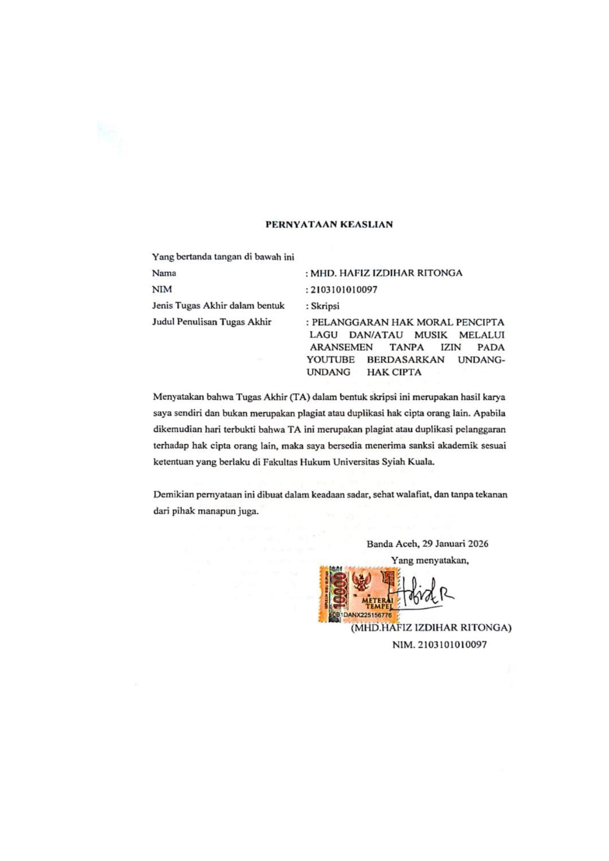 Baca Juga : PERLINDUNGAN HUKUM HAK CIPTA MUSIK TERHADAP PELANGGARAN YANG DILAKUKAN OLEH MUSISI (SUATU PENELITIAN DI BANDA ACEH) (ARY KURNIAWAN PUTRA, 2020)
