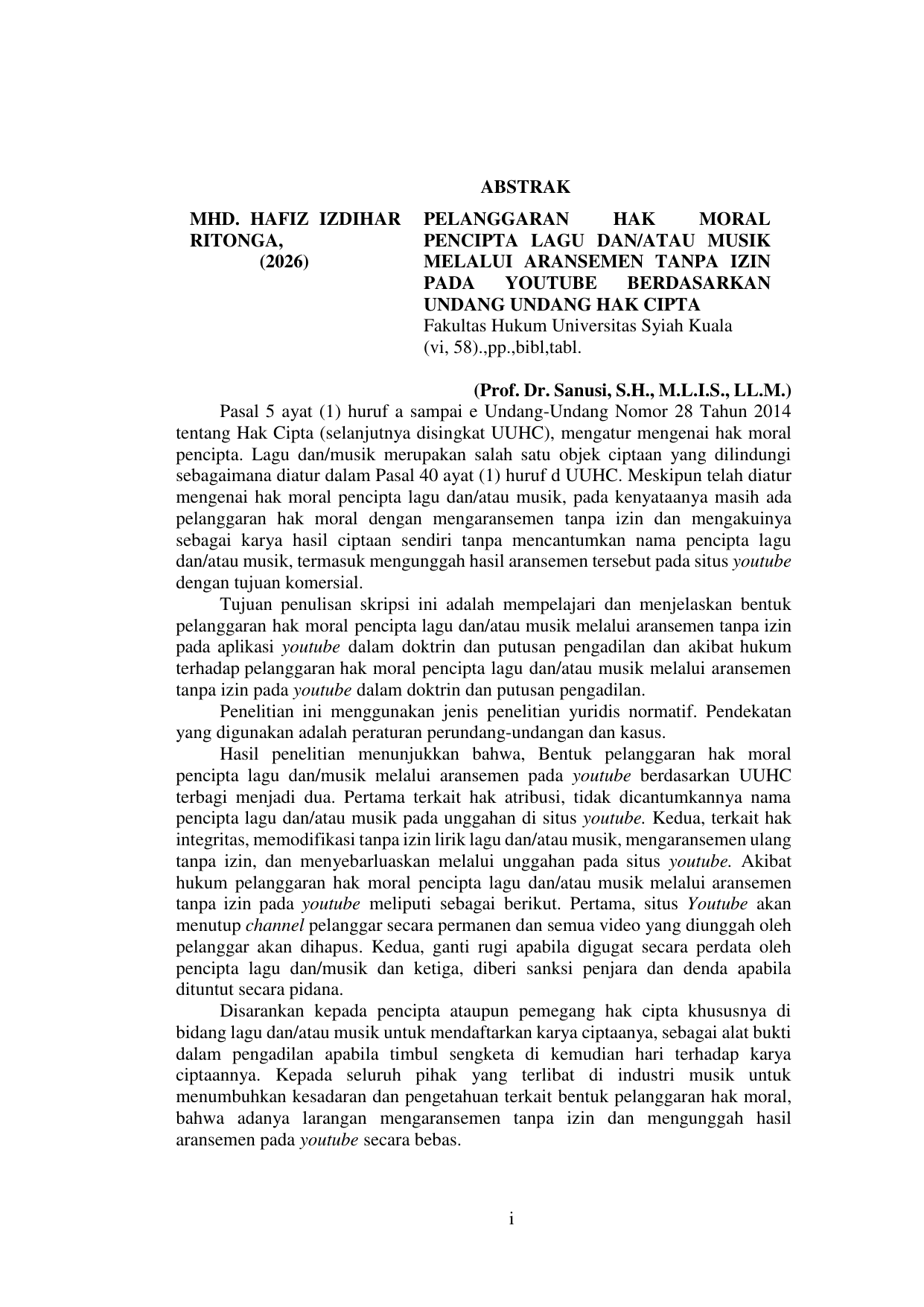 Baca Juga : ANALISIS PELANGGARAN HAK MORAL PENCIPTA ATAS LAGU YANG DINYANYIKAN ULANG (COVER LAGU) DENGAN PERUBAHAN TANPA IZIN PENCIPTA (Sri Maulina, 2016)